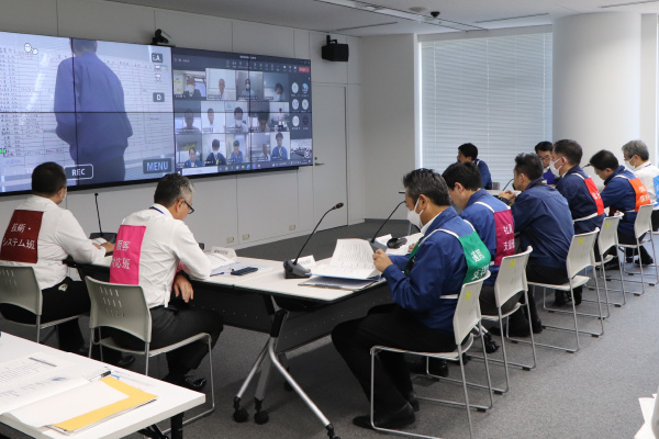 災害発生時の連携強化と対応力の向上を目的に総合防災訓練を年2回(3月11日・9月1日)実施しています。災害対策本部の設置、各責任者による被災状況の情報収集やお客様への対応、社員の安否確認といった一連の流れを訓練し、事業所およびグループ会社との連携と災害対応力の向上に努めています。海外の現地法人においては、各国で災害が発生した際の現地法人から本社海外事業部への報告体制を強化しました。