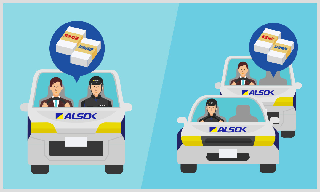 ALSOKの警備輸送ノウハウとマンパワーを生かし、試験問題に関するご担当者様の様々な負担やリスクを軽減し、