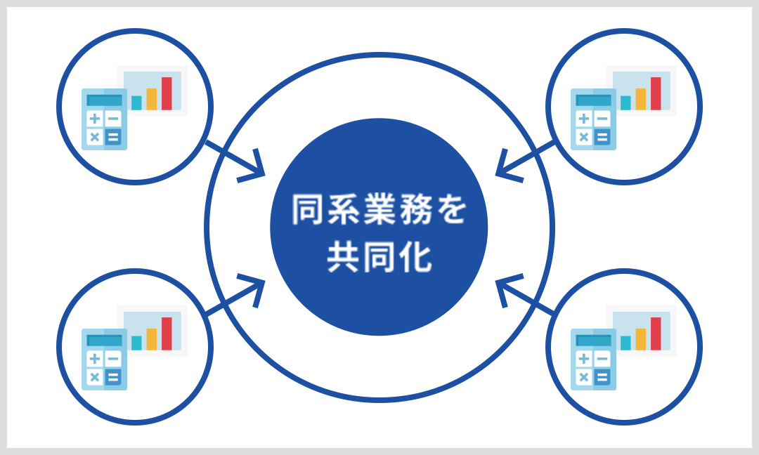 重複業務のスリム化・簡素化を進め、アウトソースによるコスト削減効果を高めます。また集約化することでの削減効果も期待できます。