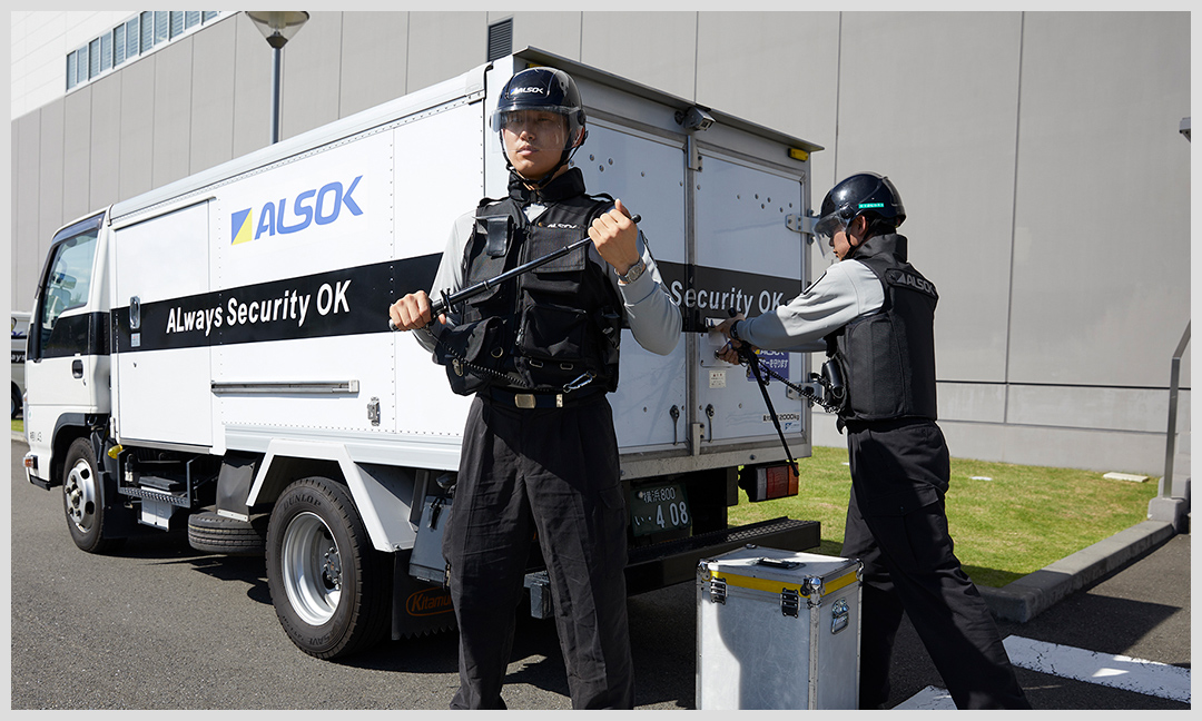 当社の現金輸送車(2名乗務)で安全・確実な警備輸送を行います。