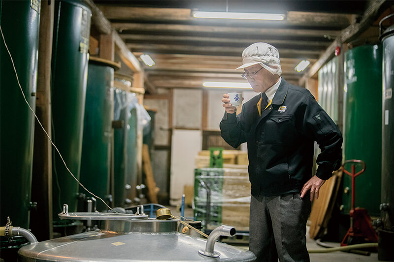 できたての日本酒の香りを確認する村松さん。