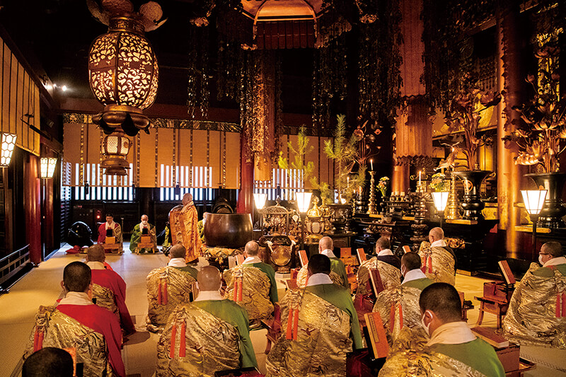 ※「お朝事」の参列は無料。内陣券を購入すると間近に参列できる。開始時間は日の出に合わせて分単位で変わるため、詳細はHPをご確認ください。