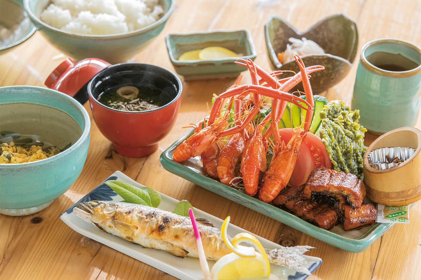 川の下流にある人気料理店「四万十屋」の名物は「四万十川まるごと定食」。四万十川で獲れた鮎や川えび、ごり、養殖うなぎをいただけます。「天然うな重」も美味。「天然うなぎは独特の香りや歯ごたえで、養殖とは別物。天然には天然の、養殖には養殖のおいしさがあります」と店長の田村吉教さん。ぜひ四万十川の幸を存分に味わってみてください。