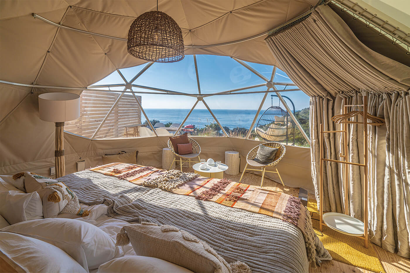全25室の客室のほとんどはオーシャンビュー。写真はDot Glampingアシズリテルメのドームテント。全4棟ある。