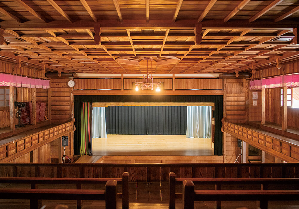 昭和23年に建設された和洋折衷の芝居小屋。平成7年に移転・復元。老朽化から取り壊しが検討された際、隈氏が保存運動に携わった。