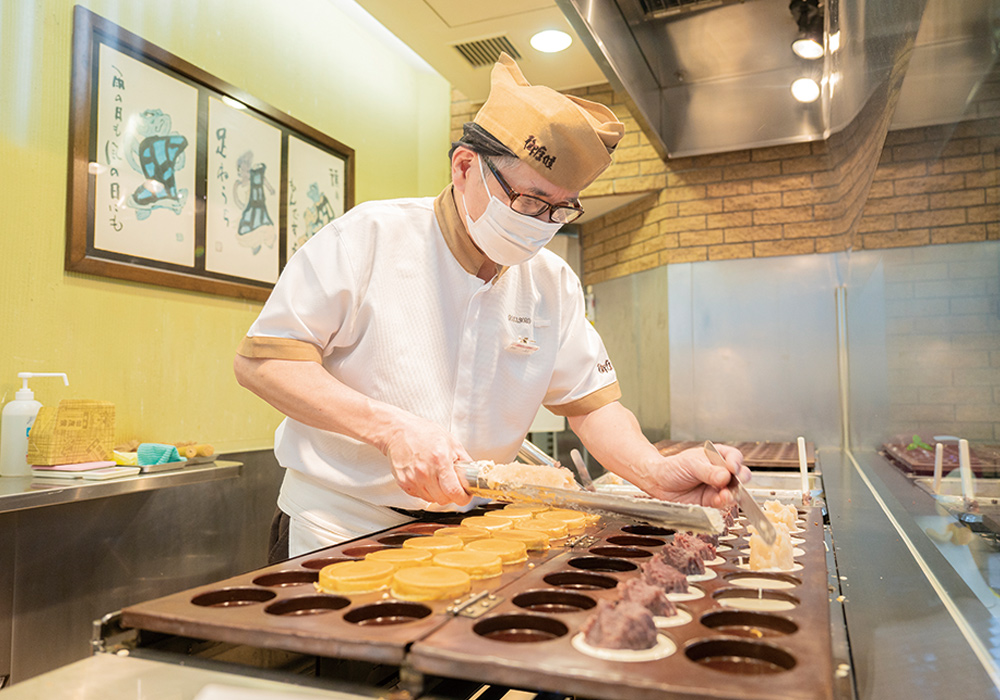 「御座候」は1950年に創業し、全国78店舗で回転焼きを販売する。あずき染め製品などのグッズを購入できるショップもある。また定期的にあずきを使った調理体験も開催している(要予約)。