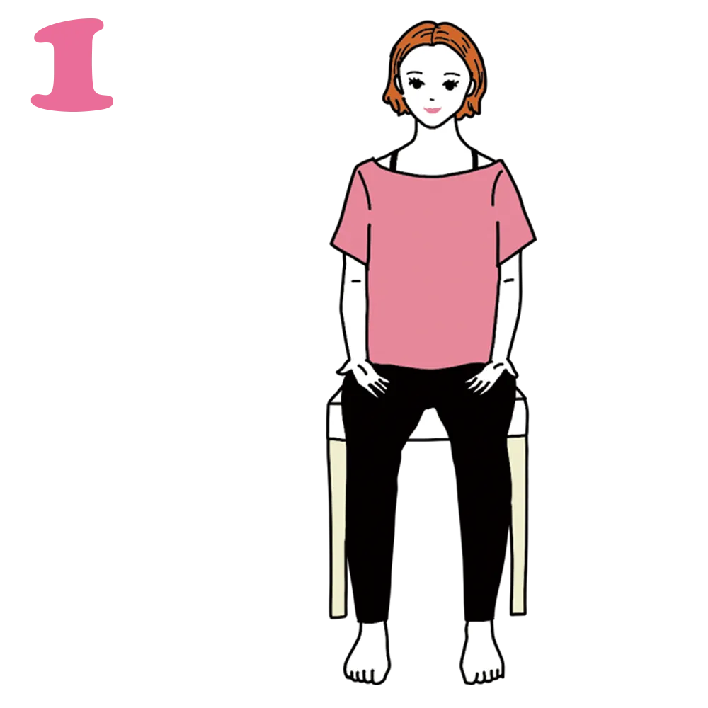 - 足の裏がしっかり床に着くよう、座面に浅く腰かけます。