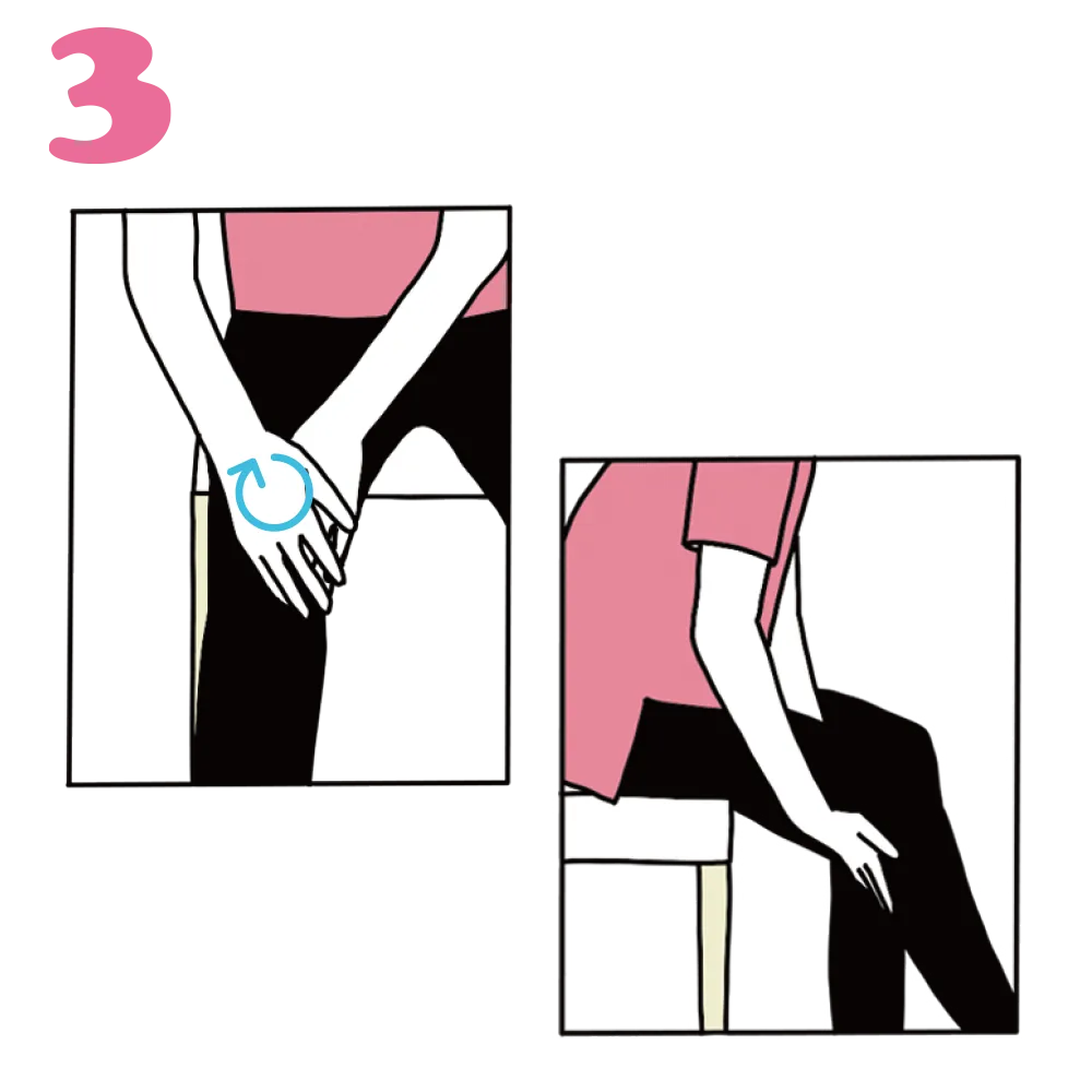 お尻を持ち上げられる方は、もも裏からお尻もさすりましょう。