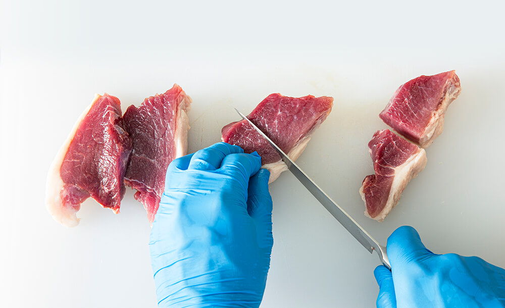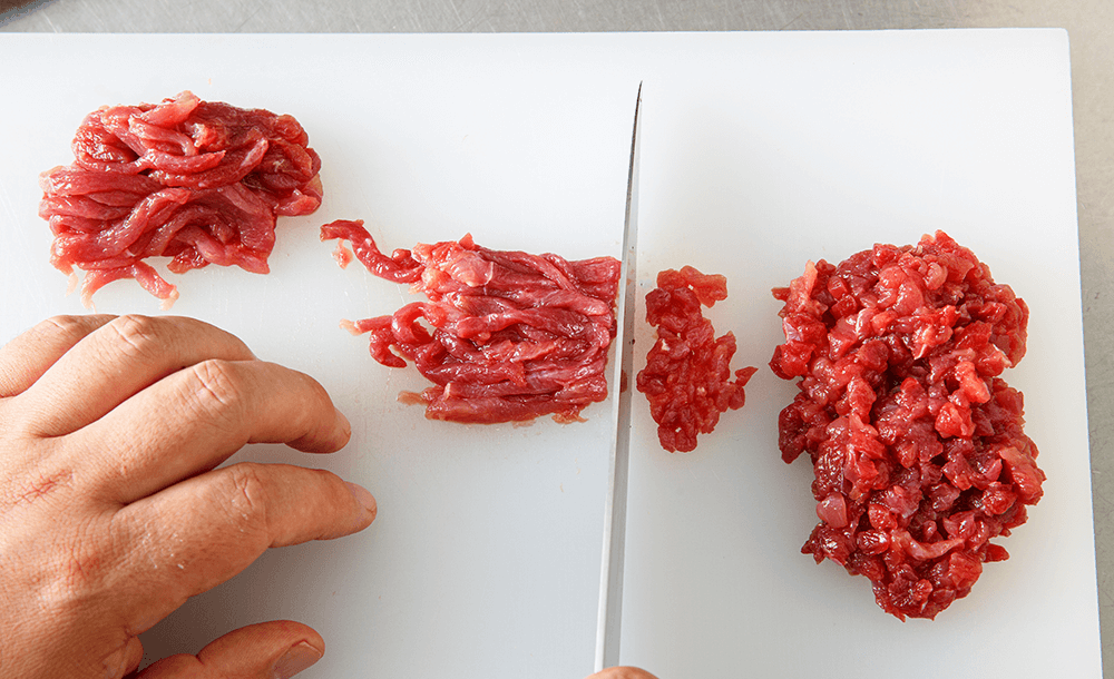 猪モモ肉を5mm角に切る。