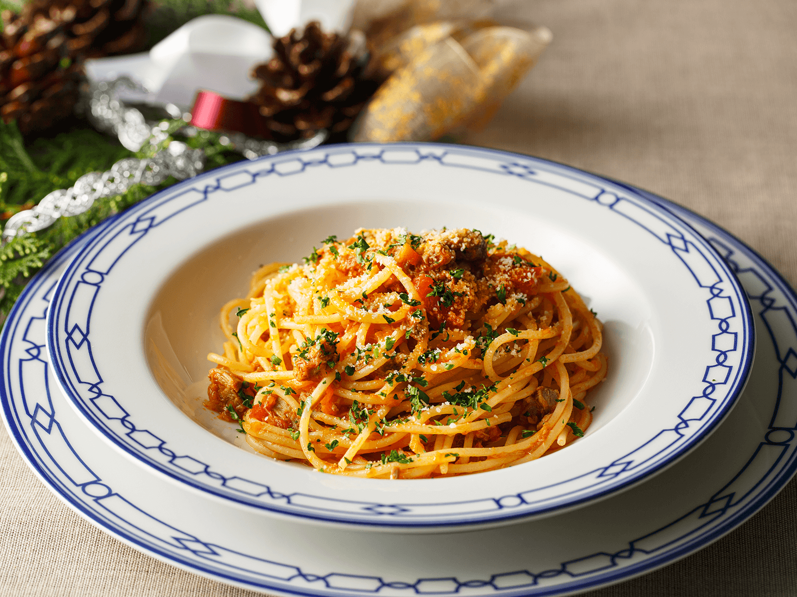 スパゲッティ 猪肉のトマト風味ラグー和え