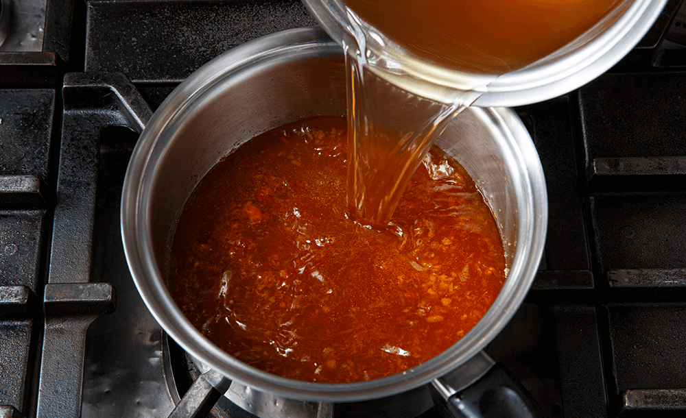 チキンブイヨンを加え、沸騰させる。アクが気になったら適宜取り除く。